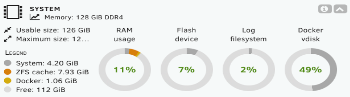 Unraid beschränkt ZFS automatisch auf die Nutzung eines angemessenen Teils des RAM Ihres Systems (in der Regel 1/8 des gesamten RAM). Dies ermöglicht, dass ZFS gut performt, ohne Docker-Container, VMs oder das Unraid-Betriebssystem zu beeinträchtigen.